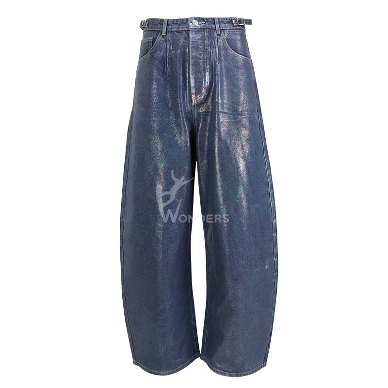 Mens loose Jeans Machete shaped Baggy Wax Denim with Mixed silver and golden foil treatment ,Cool and hip-hop Jeans
