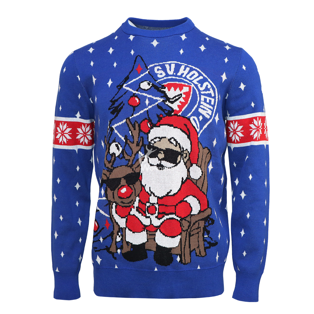 The Festive Classic Cool Santa Jolly Shark Crewneck Knit Jacquard Pullover